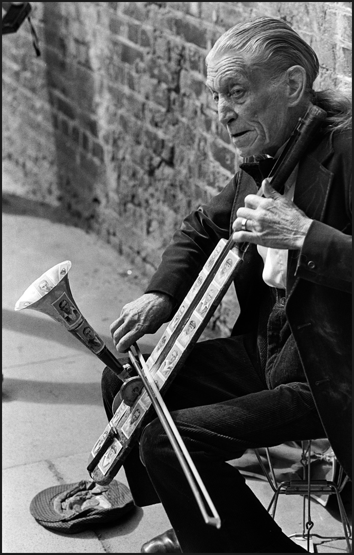 Kanske såg Kalle nåt liknande denna trumpetcello när han fick ett kreativt infall och skapade sin saxofonfiol.